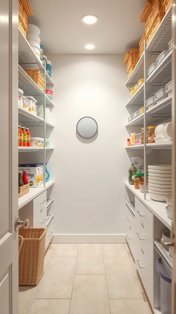 Another great idea is to incorporate under-shelf lighting. This can help you see items stored on lower shelves easily. It also adds a modern touch to your pantry. With the right lighting, your pantry can feel more spacious and inviting.