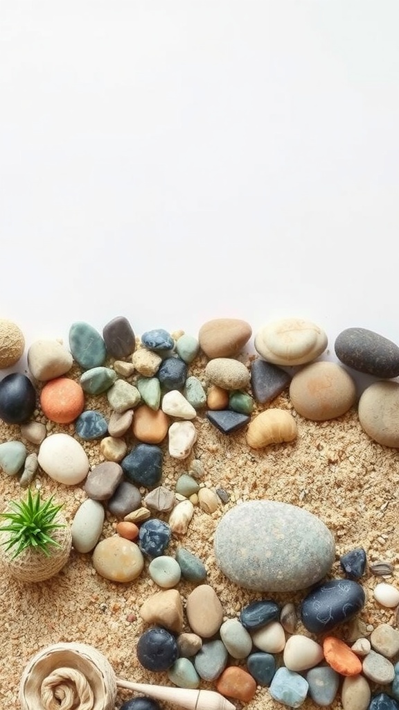 Stones play a significant role too. They can represent mountains or islands. In this image, a few rocks are visible, grounding the space and adding texture.