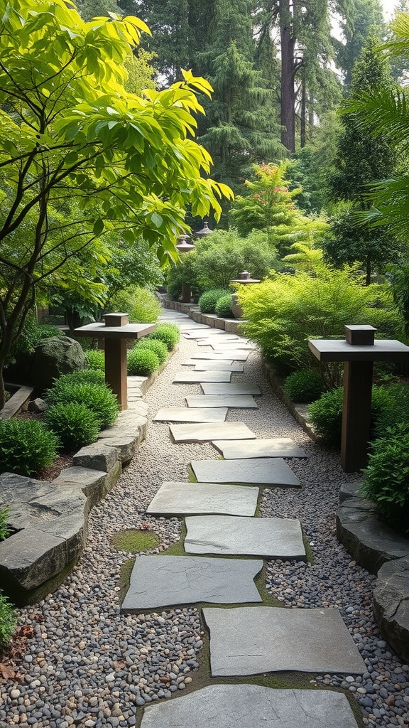Zen gardens are more than just beautiful spaces; they play a role in promoting environmental sustainability. In the image, you see a serene garden path lined with various plants and stones. This design reflects a balance between nature and human-made elements.