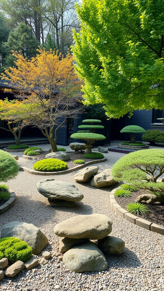 Zen gardens create a peaceful retreat, and choosing the right plants is key. The image showcases beautifully shaped greenery that complements the serene vibe of a zen garden.