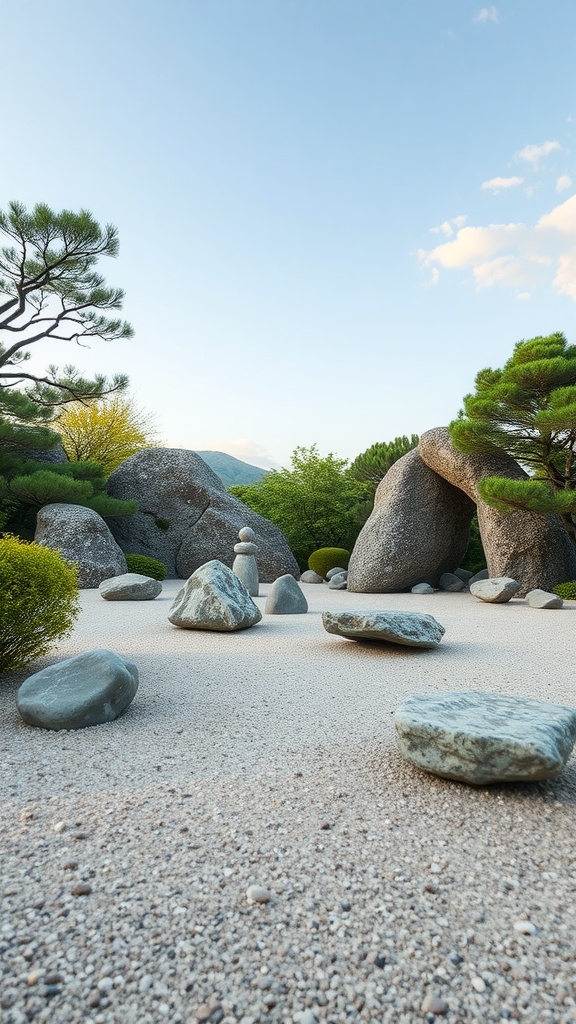 The sky above adds to the feeling of openness and freedom, as clouds drift lazily by. It’s a perfect spot for meditation or simply enjoying the scenery. The design elements in this zen garden promote harmony, inviting everyone to connect with the natural world.