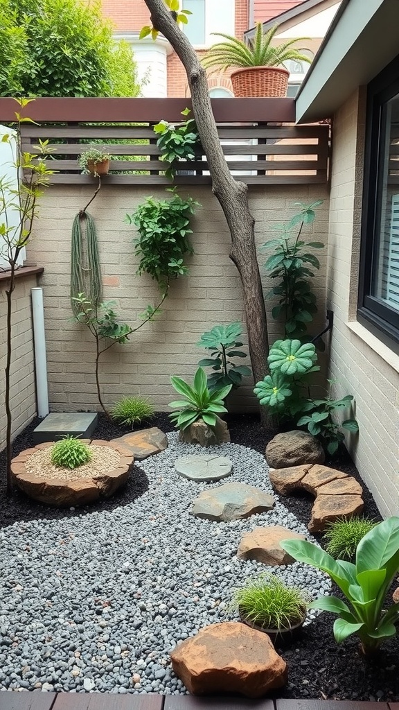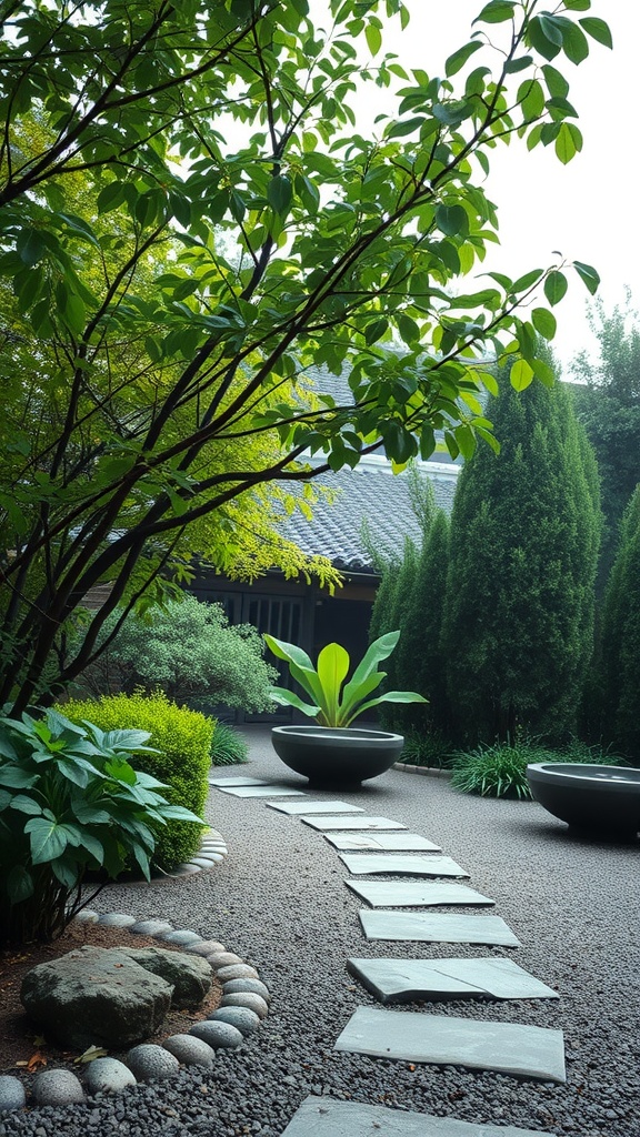 Rocks and gravel are essential in zen gardens. They symbolize water and bring an element of calm. The contrast between the plants and hardscape adds depth, making the garden more visually appealing.