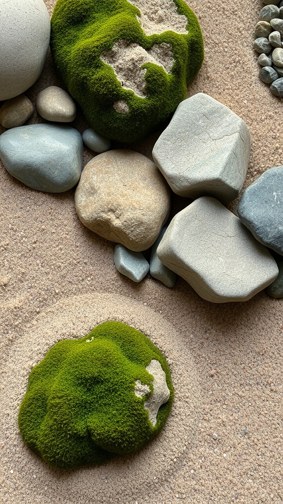 In a zen garden, texture plays a big role in setting the mood. The mix of smooth stones and soft moss creates a pleasing contrast. Each rock invites touch and contemplation, making the space feel alive.